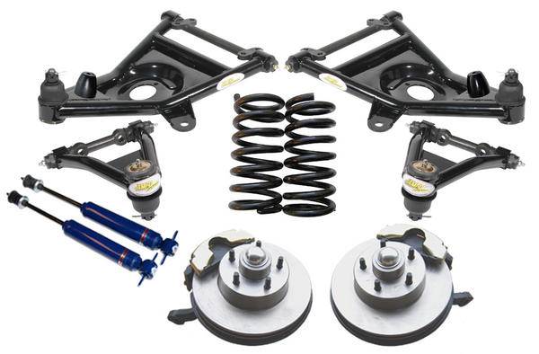 JAMCO'S ALL NEW TUBULAR A-ARM BALL JOINT CONVERSION FOR THE 49-53 FORDS. THIS ALL NEW KIT INCLUDES: NEW POWDER COATED TUBULAR UPPER AND LOWER A-ARMS WITH BALL JOINTS INSTALLED, DISC BRAKE AND SPINDLE KIT, NEW COIL SPRINGS & NEW SHOCKS. NO MORE HAVING TO TEAR DOWN YOUR CAR AND SEND IN YOUR A-ARMS TO BE CONVERTED. COMPLETE KIT IS BOLT ON. NO CUTTING OR WELDING IS REQUIRED. NEW SPINDLES WILL DROP THE CAR ABOUT 1" . COILS ARE AVAILABLE AS STOCK, 1", 2" OR 3" DROP. NEW SHOCKS WILL MATCH HEIGHT OF COILS. 5 ON 4 1/2" BOLT PATTERN ONLY