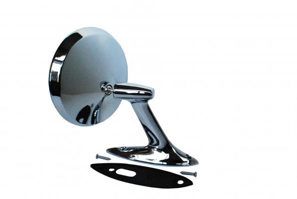 1953-54 CHEVY CAR OUT SIDE DOOR MIRROR - CHROME - FITS DRIVER OR PASSENGER SIDE - INCLUDES GASKET AND SCREWS.