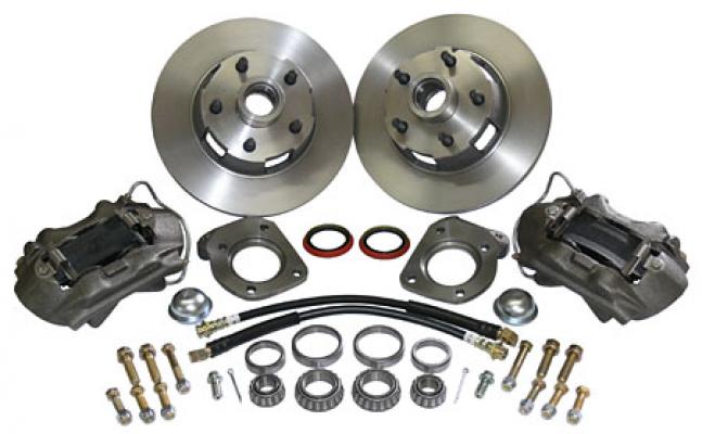 1964-67 FORD MUSTANG DISC BRAKE CONVERSION FOR STOCK SPINDLES. KIT INCLUDES: 11" ROTORS, KELSEY HAYS 4 PISTON CALIPERS, BEARINGS, SEALS, DUST CAPS, RUBBER BRAKE HOSES PLIUS ALL MOUNTING HARDWARE. THIS ITEM HAS AN ADDITIONAL OVERSIZE SHIPPING CHARGE OF 20.00