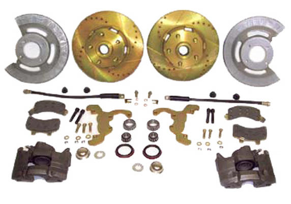 THIS COMPLETE KIT IS DESIGNED TO WORK WITH THE STOCK 67-71 FAIRLANE / TORINO STOCK SPINDLES AND WHEELS. KIT INCLUDES: 11" ROTORS, CALIPERS, CALIPER BRACKETS, BEARINGS, HOSES, DUST CAP & ALL NECESSARY HARDWARE. STOCK ROTORS SHOWN. THIS ITEM HAS AN ADDITIONAL OVERSIZE SHIPPING CHARGE OF 20.00