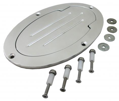 BILLET ALUMINUM FUEL TANK ACCESS DOOR – POLISHED OVAL